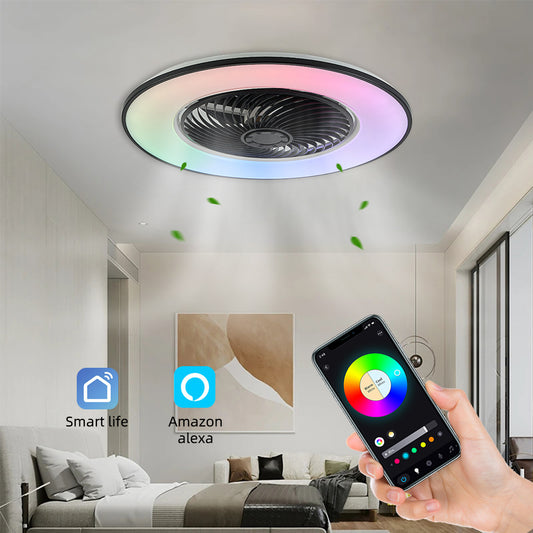 Glissimo 3 in 1 Slimme Plafondventilator met Lamp en Bluetooth Speaker – Fluisterstil – Dimbare LED – Afstandsbediening – 3 Snelheden – Zomerstand - Winterstand - Zwart