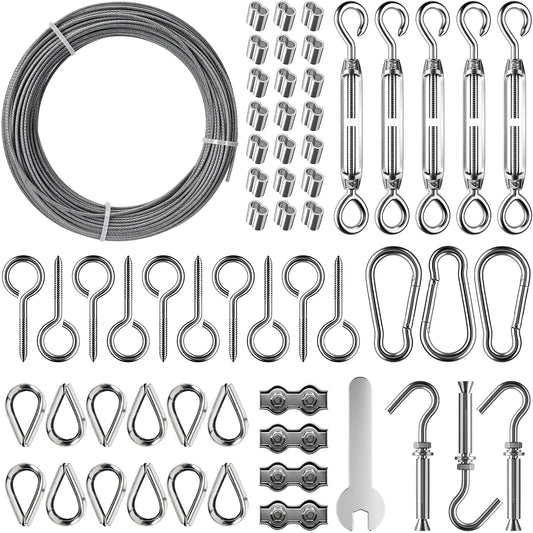 Glissimo staaldraadkabelset – 30 m x 2 mm nylon gecoate staaldraad – inclusief roestvrijstalen haken, schroefogen en bevestigingsmiddelen – voor het ophangen van lampen, waslijnen en buitengebruik